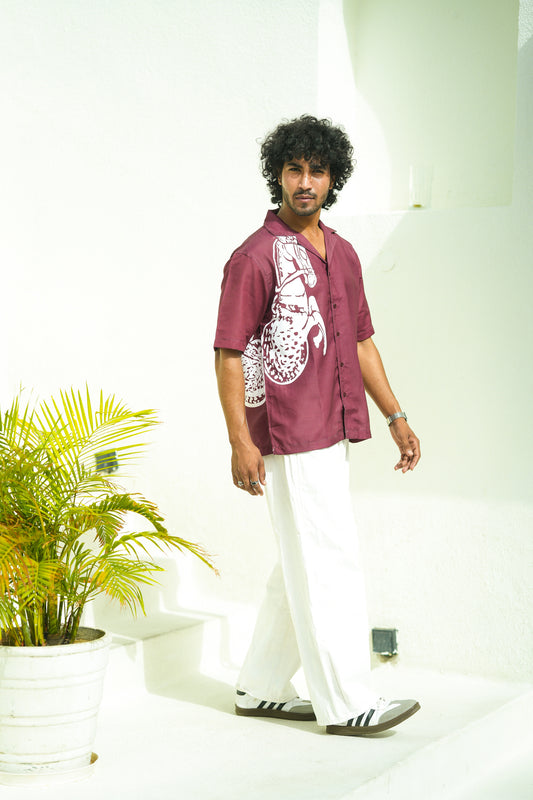 MAROON OVERSIZED SHIRT WITH BOLD WHITE HORSE GRAPHICSRegular price Rs.1,499.00 INRRegular priceUnit price per