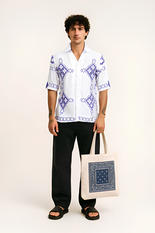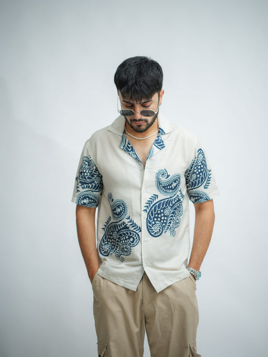 OFF WHITE BLUE PAISLEY BOURBON OVERSIZED SHIRTRegular price Rs.1,499.00 INRRegular priceUnit price per