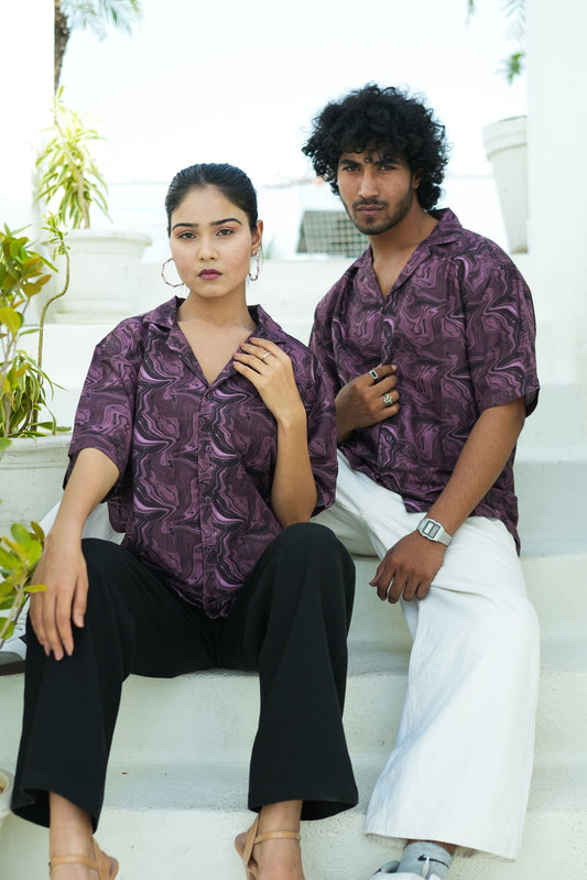 AURORA DRIFT MARBLE PATTERN WINE COLOR OVERSIZED SHIRTRegular price Rs.1,499.00 INRRegular priceUnit price per